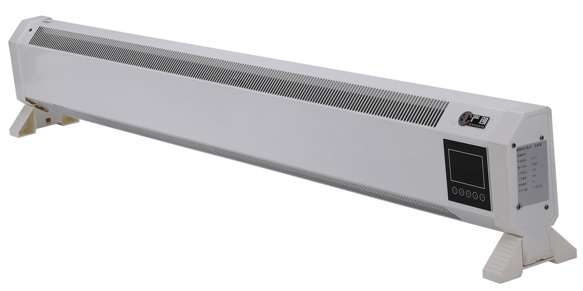 踢腳線電暖器的散熱器為長矩形設計,如2000W的散熱器其長度為2.13米,超長的出風口是普通方形散熱器的3倍,散熱橫截面大,發(fā)出的熱風像一堵墻一樣,俗稱“熱幕墻”,如果安裝在窗下,可以完全把冷空氣擋住,供暖效果極佳。這就是典型的“面”式散熱,彌補了方形散熱器“點”式散熱造成的空間溫度不一致的缺陷。